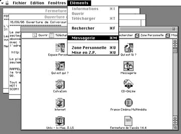 インターネットブーム以前にも,草の根BBSはいくつか開局していました.しかし,その多くはミニテルの「おまけ」のようなサービスで,内容もマニアックな領域や,ポルノグラフィが中心でした.最大手CalvaComはAFPのニュースを配信したり,広範な内容を網羅する電子掲示板があったことで,それなりの利用者を得ておりました.しかし,93年には経営不振で運営母体が倒産しています.その後別会社が経営を引き継ぎましたが,現在ではインターネットのプロバイダ事業が中心になっています.