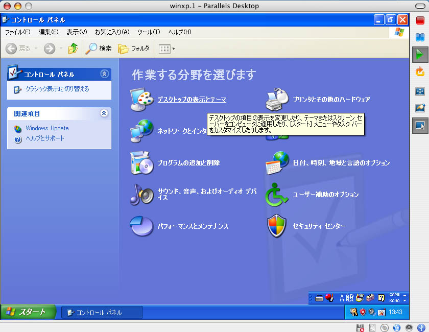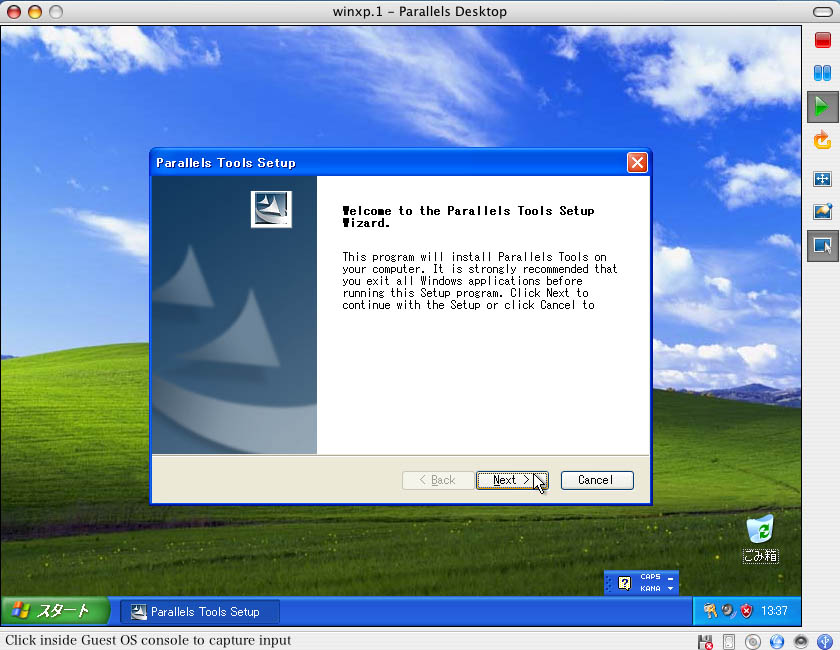 Parallels Toolsインストール後、マウスポインタは自由に移動できる。Parallels Desktopのウィンドウ内をクリックすればVM側の操作ができるようになり、ウィンドウの外側をクリックすればMacOSの操作となる。スクリーン・ショットはVM側にポインタがゆだねられているときでも機能するようだ。