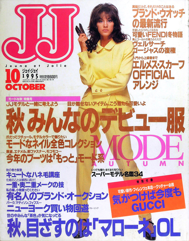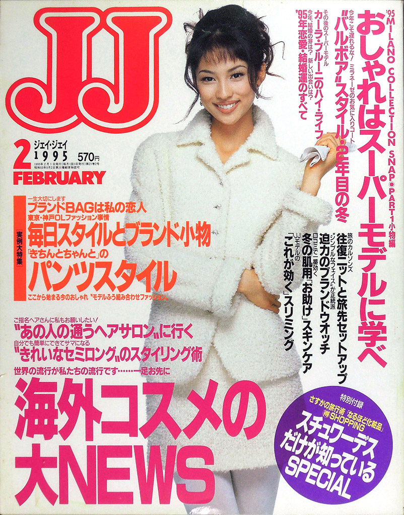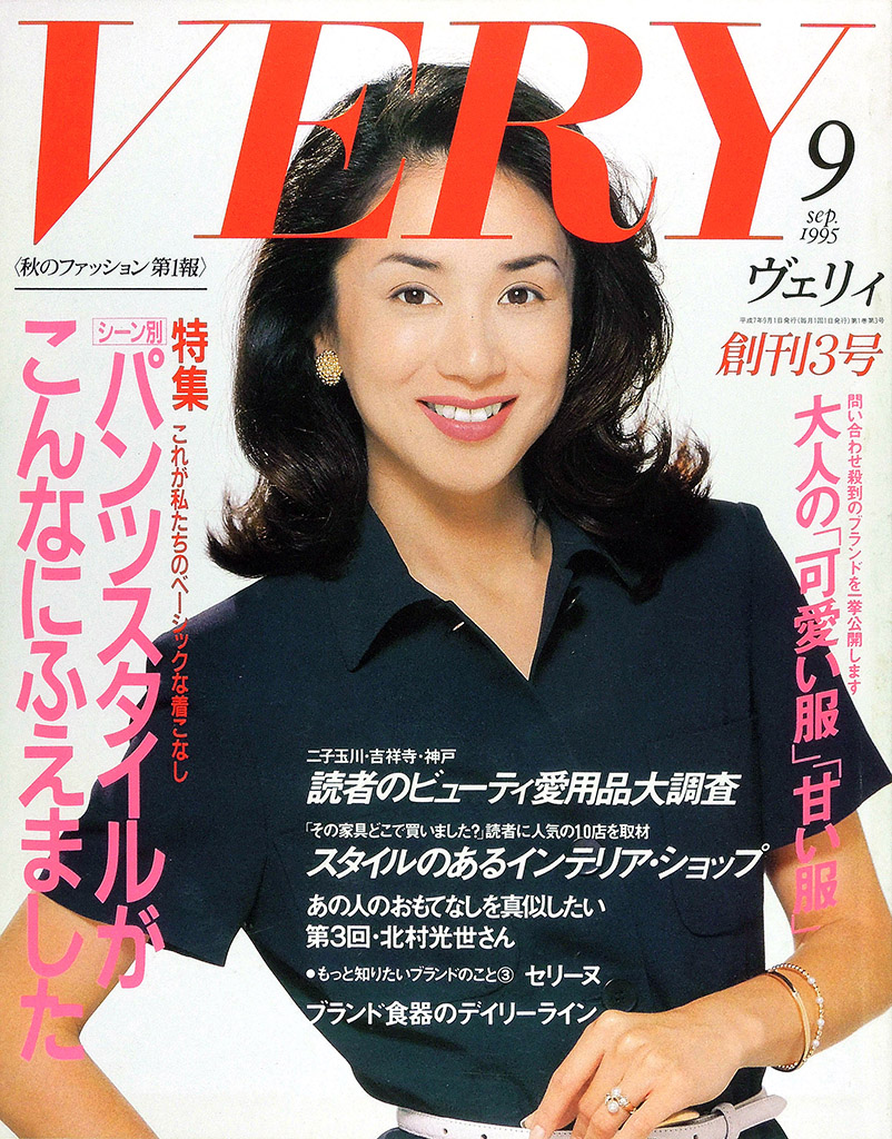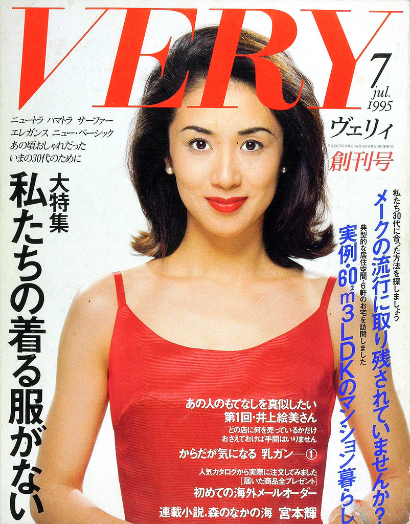 • 光文社より月刊『VERY』が創刊(7月号)されました。「ニュートラ ハマトラ サーファー エレガンス ニュー・ベーシック あの頃おしゃれだった いまの30代のために」という表紙コピーからは、アラサーになった『JJ』元読者をターゲットにしたことがうかがえます。表紙モデルも1980年代半ばにJJモデルとして活躍した黒田知永子(旧姓:樫本)です。黒田知永子は2002年創刊の『STORY』でも表紙モデルであり、光文社の年代別ファッション誌を象徴するモデルとなっています。