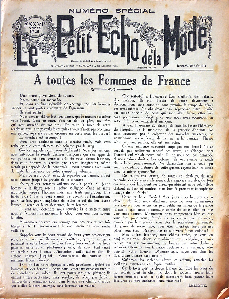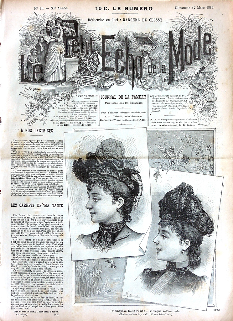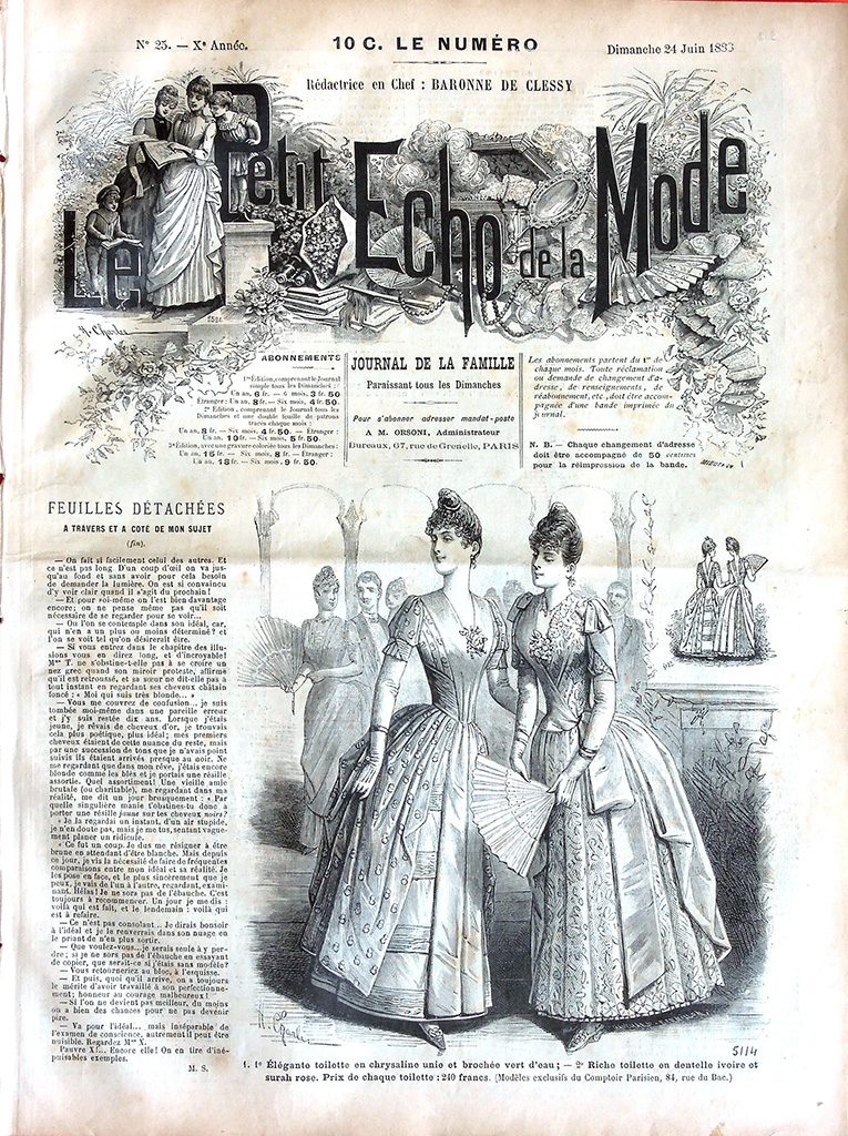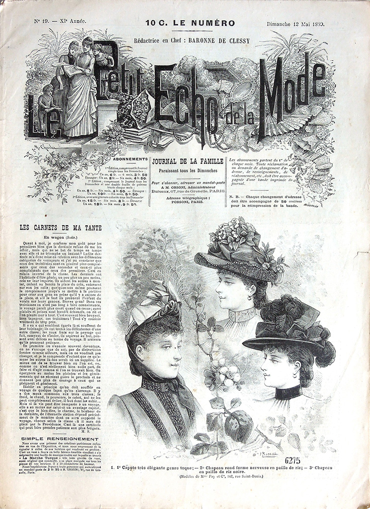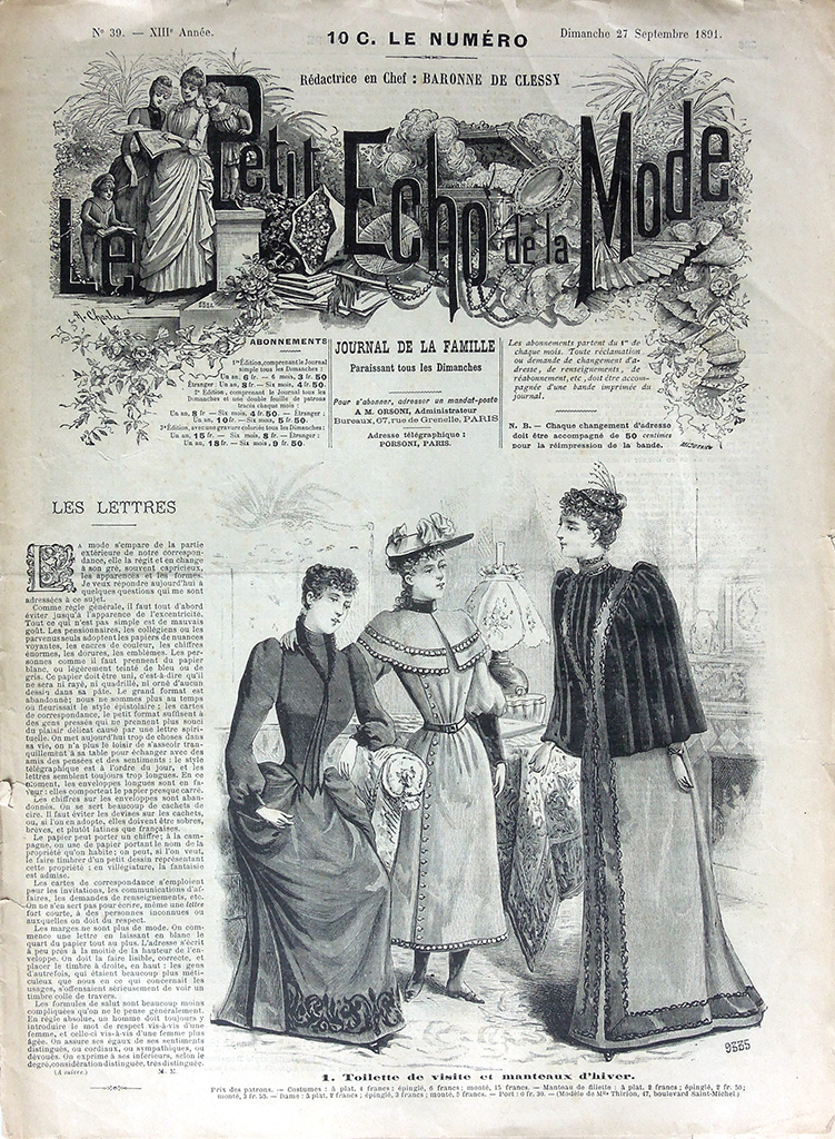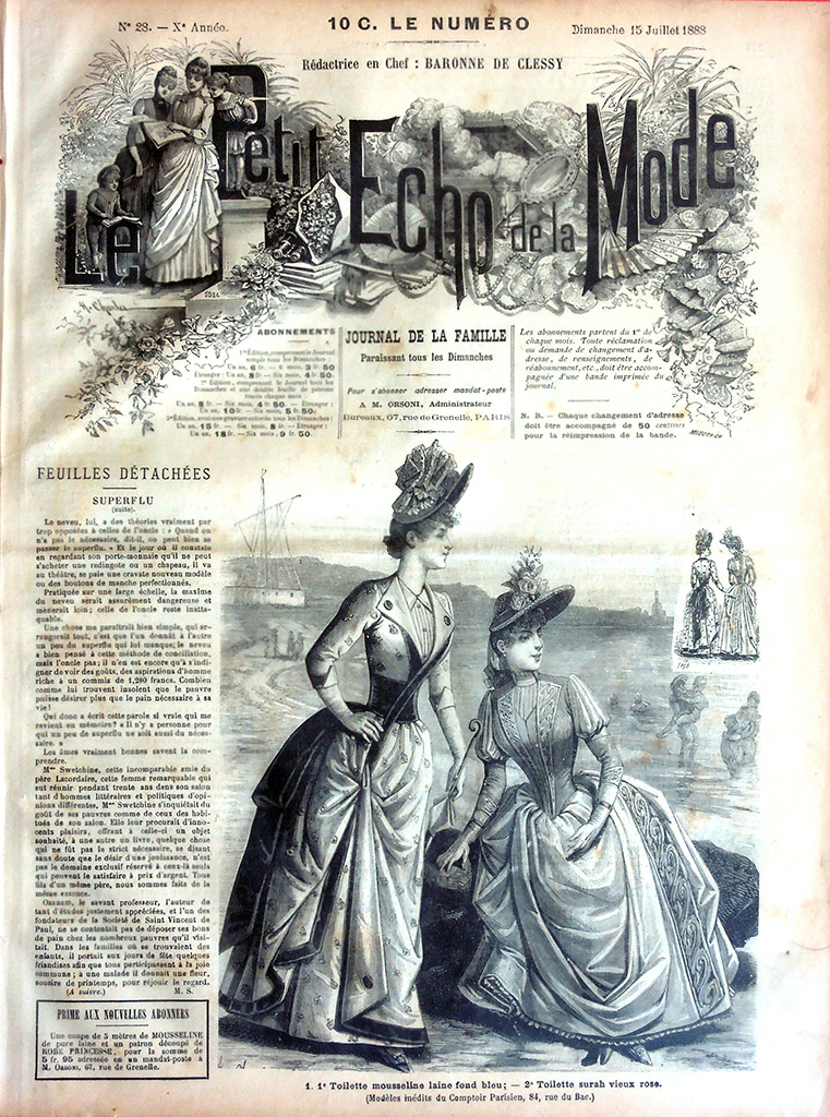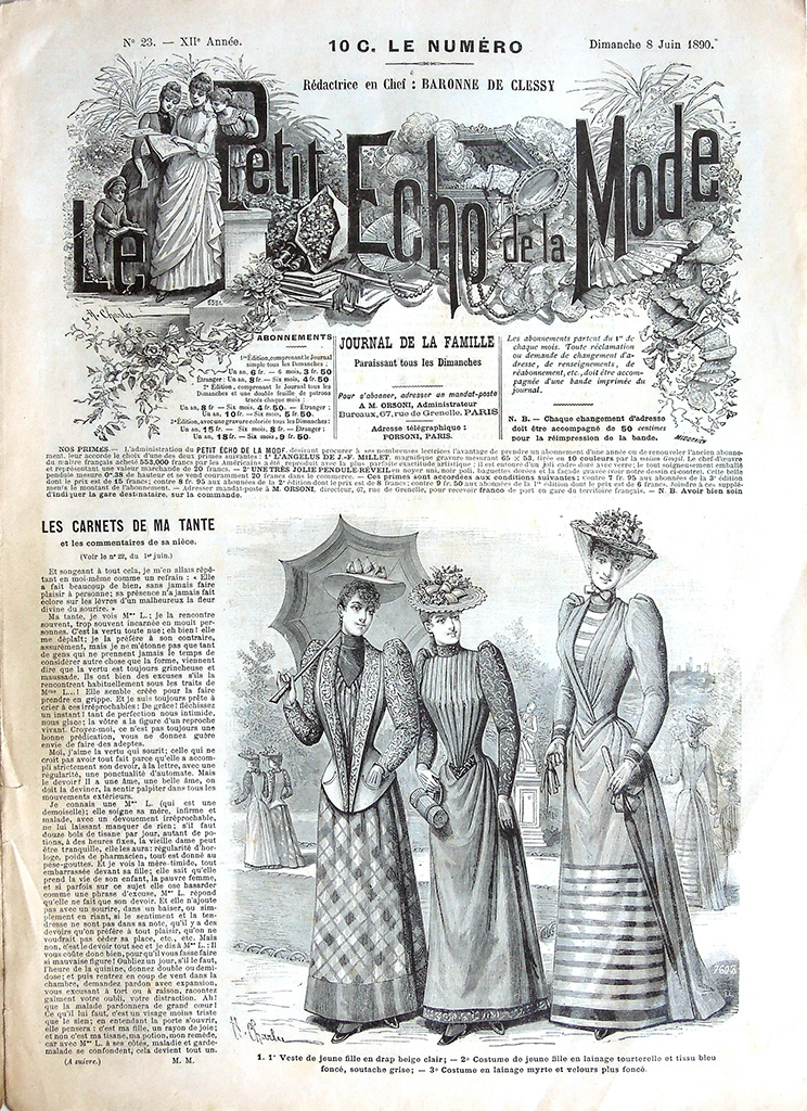 主婦向けの週刊誌 "Le Petit Echo de la Mode"(名称は創刊当時のもの)は次の2点でおおいに注目できる雑誌です。