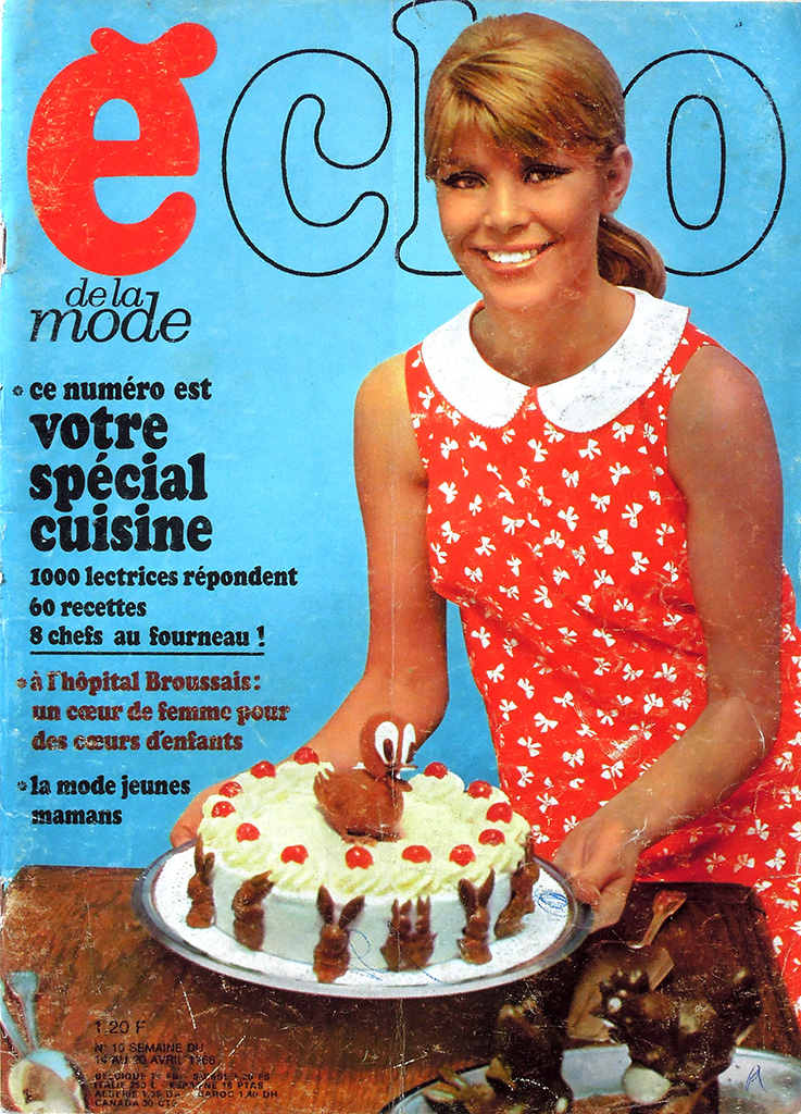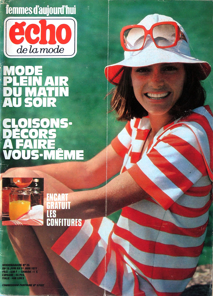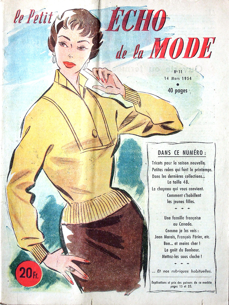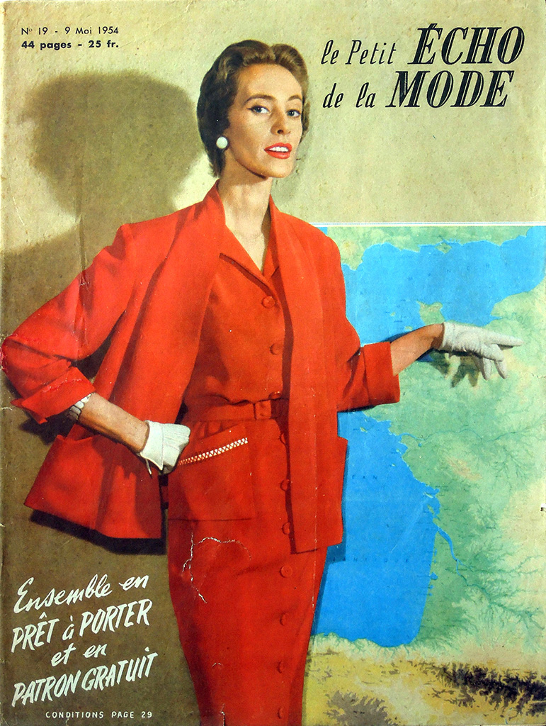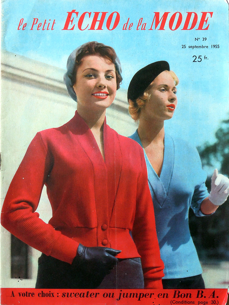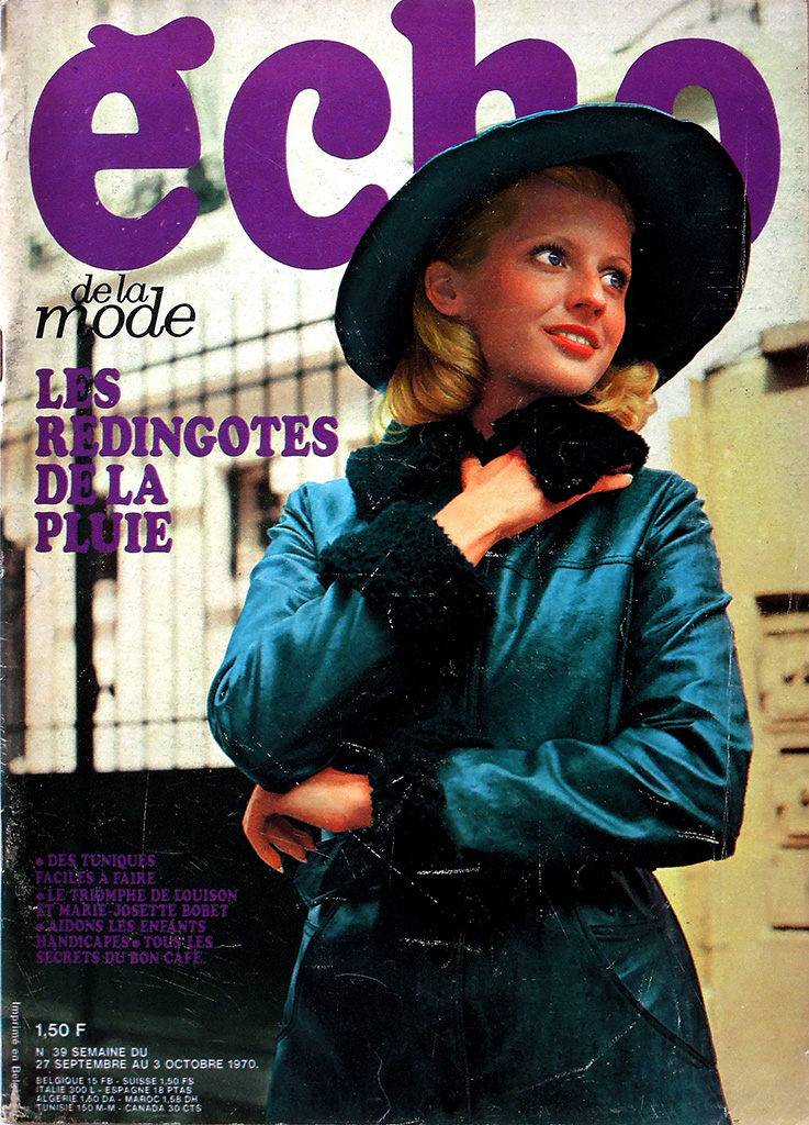 最盛期には100万部以上も発行された petit echo ですが、1968年のいわゆる五月革命のころから保守的な女性誌の低迷が顕著になってきました。petit echo も売れ行き不振に陥り、1977年には競合誌の "Femme d'Aujourd'hui" に買収されてしまいました。日本であれば版元変更という形になるのが一般的ですが、フランスの女性誌ではかなり異なる結果となりました。買収後、"echo de la mode" という雑誌自体は存続しますが、タイトルには "Femme d'Aujourd'hui" が併記されます。事の詳細は「五月革命後からFemmedoに吸収されるまで:1970〜1977」の欄で確認してください。