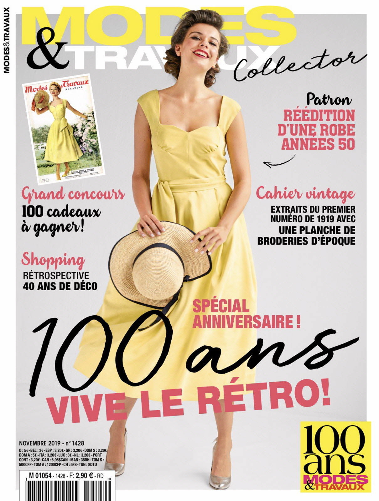 戦後に生まれた世代がターゲット年代に入ってきた1970年代にあって、少なくとも表紙からうかがわれる雰囲気に急変はみられません。しかし、家庭誌全般の売れ行き低化が続くなかで、1970年代後半には他誌と同様の変化がみられます。モデルの写真が大きくなり、腰から上の構図が中心となりました。1980年代半ば以降はバストトップになっています。この点は強力なライバル誌 "femmes d'aujourd'hui"とおなじです。1984年には通巻1,000号を突破しました。2019年11月号(未入手)が100周年記念号となっています。 |