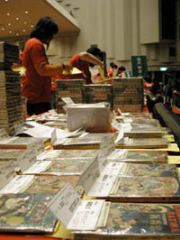 中野サンプラザでまんだらけのオークション大会が開催された。現在執筆中の単行本のネタ集めのために取材を申し込んでおいたので、友人のファンタジー作家と一緒に会場に行く。松本零士のトークショーもあった。競り市では、宮崎駿の絵コンテが(シロウト目には)高値で落札されていた。上村一夫の原画がすごく良く、5万円ぐらいなら入札してもいいかな、なんて思ったのだが、とてもそんな値でおさまるわけがないと思ったのであきらめた。