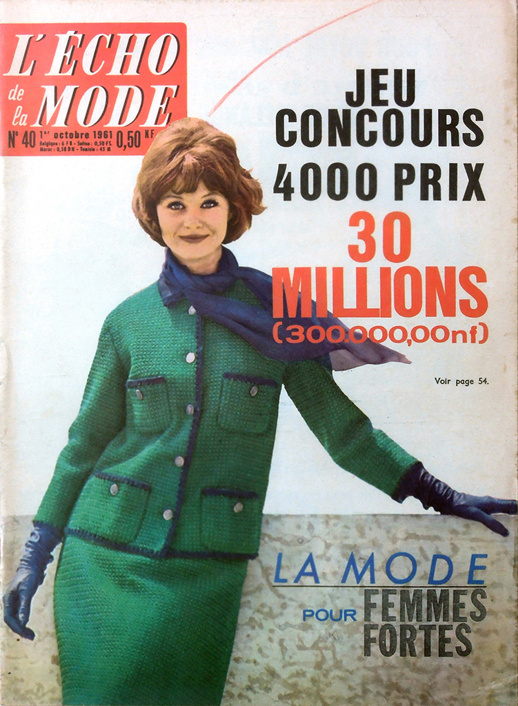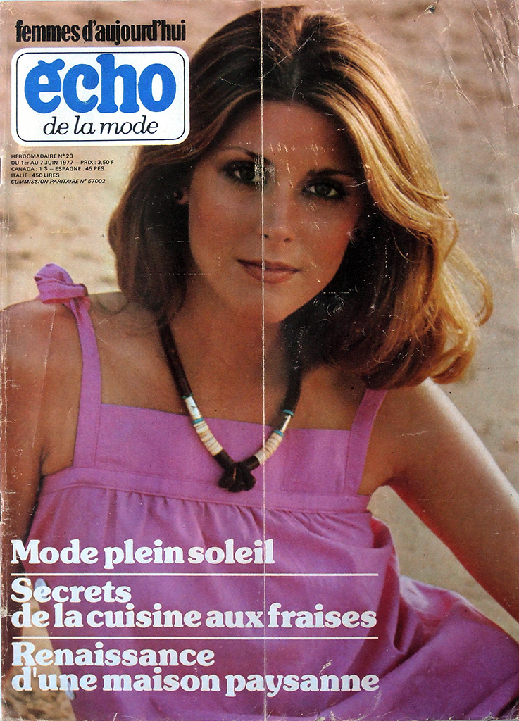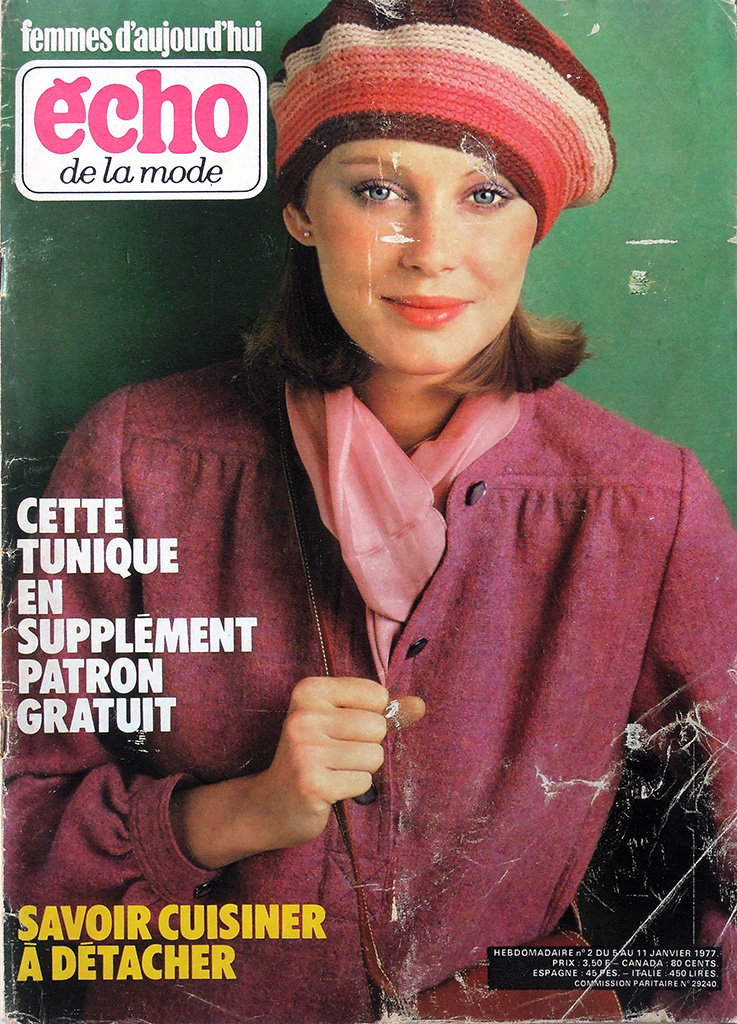 最盛期には100万部以上も発行された petit echo ですが、1968年のいわゆる五月革命のころから保守的な女性誌の低迷が顕著になってきました。petit echo も売れ行き不振に陥り、1977年には競合誌の "Femme d'Aujourd'hui" に買収されてしまいました。日本であれば版元変更という形になるのが一般的ですが、フランスの女性誌ではかなり異なる結果となりました。買収後、"echo de la mode" という雑誌自体は存続しますが、タイトルには "Femme d'Aujourd'hui" が併記されます。事の詳細は「五月革命後からFemmedoに吸収されるまで:1970〜1977」の欄で確認してください。