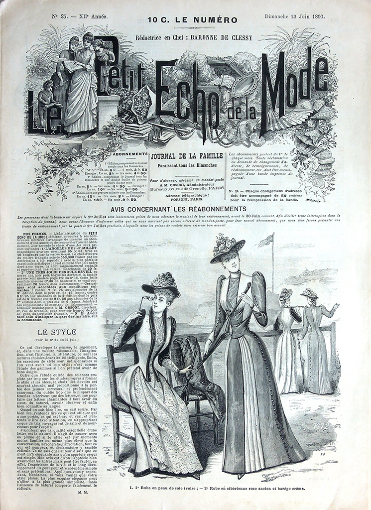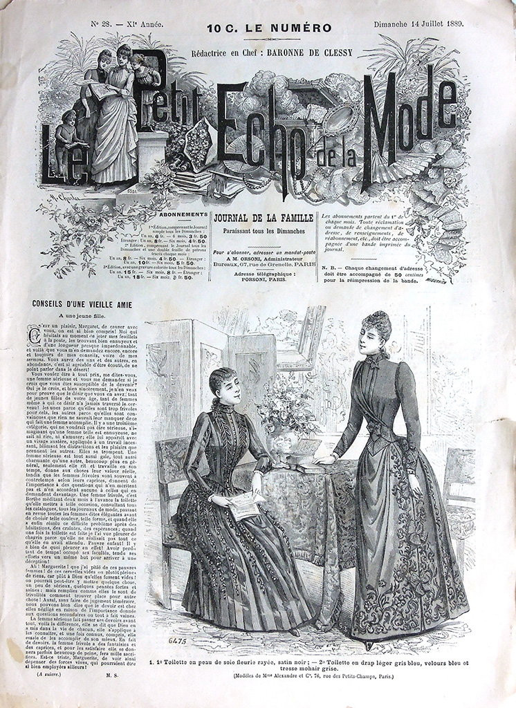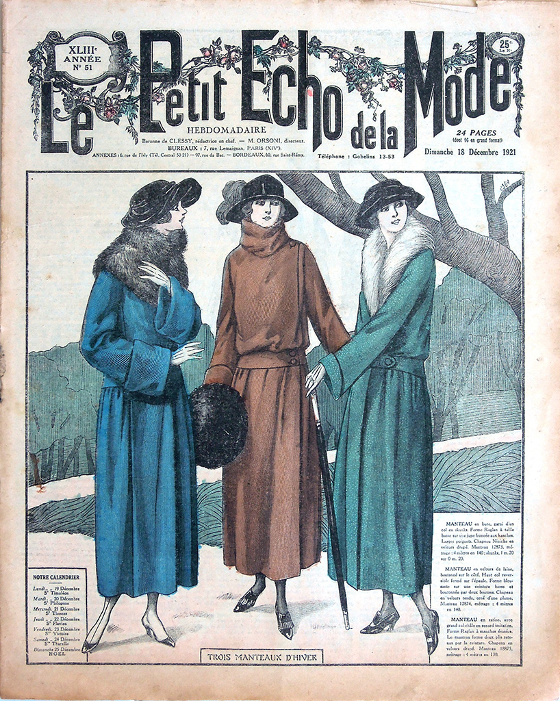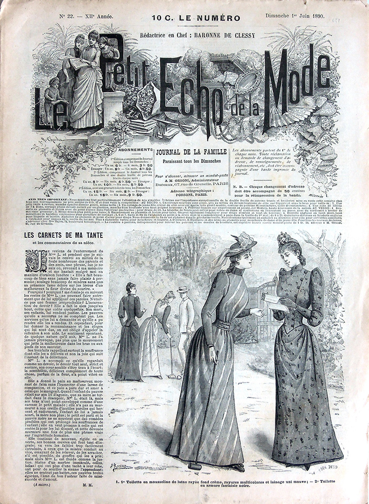 主婦向けの週刊誌 "Le Petit Echo de la Mode"(名称は創刊当時のもの)は次の2点でおおいに注目できる雑誌です。
