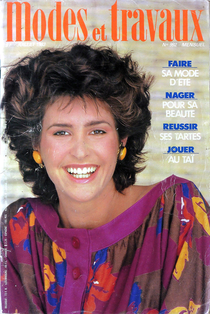 戦後に生まれた世代がターゲット年代に入ってきた1970年代にあって、少なくとも表紙からうかがわれる雰囲気に急変はみられません。しかし、家庭誌全般の売れ行き低化が続くなかで、1970年代後半には他誌と同様の変化がみられます。モデルの写真が大きくなり、腰から上の構図が中心となりました。1980年代半ば以降はバストトップになっています。この点は強力なライバル誌 "femmes d'aujourd'hui"とおなじです。1984年には通巻1,000号を突破しました。2019年11月号(未入手)が100周年記念号となっています。 |